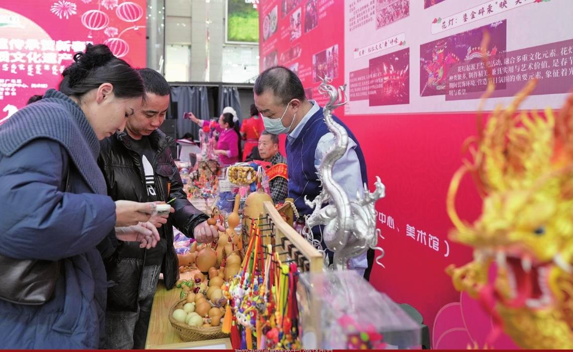 活動(dòng)現(xiàn)場年味濃郁,非遺藝術(shù)品琳瑯滿目。從精雕細(xì)琢的鐵編擺件到栩栩如生的“福祿”烙畫,每一件都凝聚著匠人的匠心巧思與傳統(tǒng)文化的深厚底蘊(yùn)。人們穿梭其間挑選心儀年貨,贊嘆聲、詢價(jià)聲、歡笑聲交織,濃濃的年味與文化氣息在市集里肆意流淌。