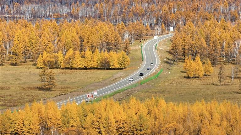 游客在內(nèi)蒙古阿爾山國(guó)家森林公園駕車(chē)游玩。新華社發(fā)