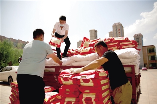 聽說這批物資是捐贈給學校的,拉載物資的工人以及尚宇的朋友、家人紛紛前來幫助搬運,“我們帶著120袋優(yōu)質(zhì)大米、200袋面、100箱有機蔬菜,慰問高新一中辛勤的老師,這是尚宇以個人的名義捐贈的。老師們無微不至地為學生付出,在這個特殊時期,希望通過慰問來表達對老師們的敬意?!北簧杏畹男袨楦袆?,前來幫助搬運物資的李聰亮介紹。