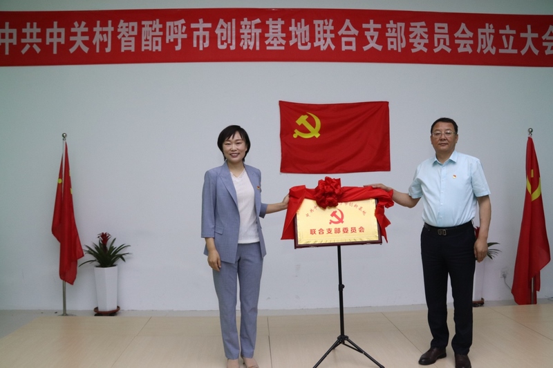 儀式上,呼和浩特市新城區(qū)鴻盛園區(qū)黨工委副書記韓耀珍宣讀了《中共中關(guān)村智酷呼市創(chuàng)新基地聯(lián)合支部委員會(huì)批復(fù)》,并帶領(lǐng)全體黨員重溫了入黨誓詞。鴻盛園區(qū)黨工委書記云海峰、中共中關(guān)村智酷呼市創(chuàng)新基地聯(lián)合支部委員會(huì)黨支部書記張曉娟共同為中共中關(guān)村智酷呼市創(chuàng)新基地聯(lián)合支部委員會(huì)揭牌。