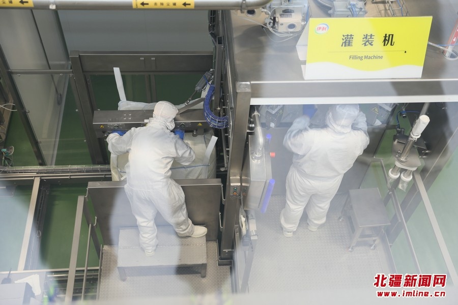 車間內(nèi)一派繁忙,液奶、奶粉生產(chǎn)線在高效運(yùn)轉(zhuǎn),貼管、分包、裝箱等工序一氣呵成,數(shù)字工廠、無(wú)菌車間、智能監(jiān)控等處處體現(xiàn)著現(xiàn)代化、智能化、生態(tài)化。