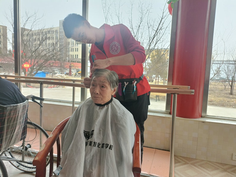 志愿者為敬老院義診、剪發(fā)、心理輔導(dǎo)、打掃房間等活動(dòng)。