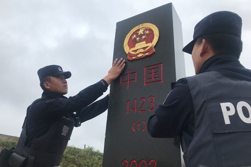 9月18日上午,內蒙古額布德格邊境派出所民警在巡邊途中,擦拭沿途界碑,以獨有的方式向為國捐軀的英雄們致以崇高敬意。