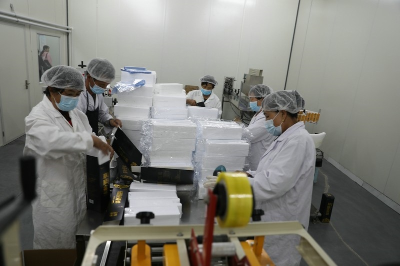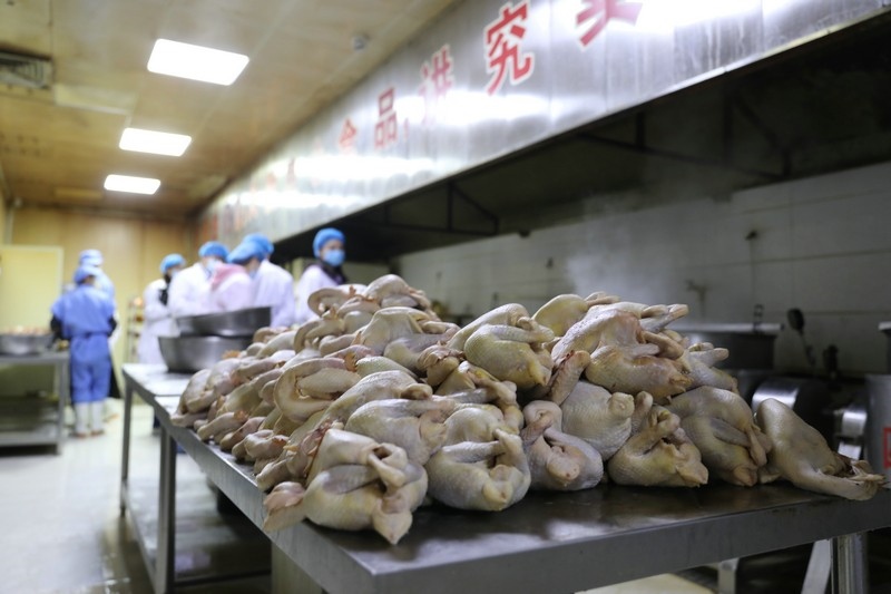 當日上午,媒體團成員進入加工車間實地了解熏雞、熏蛋、熏肉等特色產品生產加工過程。據了解,卓資縣的熏雞每年銷量約為400萬只,產值2個億,帶動了當地群眾脫貧致富,是真正的富民強縣產業(yè)。目前,卓資熏雞在繼承傳統(tǒng)工藝的基礎上,引進鎖鮮包裝,使熏雞保鮮期由原來的7天增加到15天,并進入電商平臺面向全國銷售。