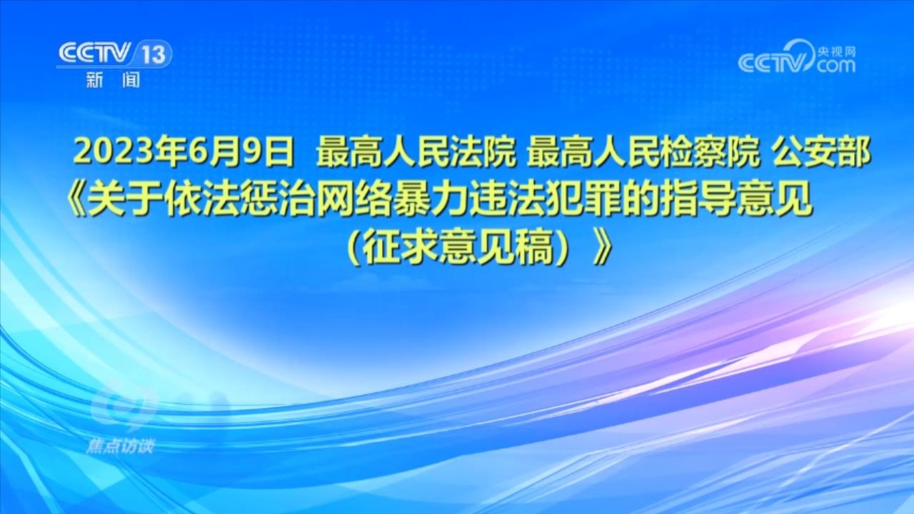 央視網(wǎng)消息(焦點(diǎn)訪談):俗話說“舌上有龍泉,殺人不見血”。網(wǎng)絡(luò)暴力不同于現(xiàn)實(shí)中的拳腳相加,但是這些在網(wǎng)絡(luò)空間中用文字、圖片等方式進(jìn)行的傷害和侮辱,一樣可以對當(dāng)事人的現(xiàn)實(shí)生活產(chǎn)生惡劣的影響,讓當(dāng)事人的心靈“流血”。在傷害當(dāng)事人的同時(shí),網(wǎng)絡(luò)暴力行為也嚴(yán)重污染了互聯(lián)網(wǎng)環(huán)境,影響社會(huì)和諧穩(wěn)定。近日,國家互聯(lián)網(wǎng)信息辦公室起草了《網(wǎng)絡(luò)暴力信息治理規(guī)定(征求意見稿)》,向社會(huì)公開征求意見;同樣是針對網(wǎng)絡(luò)暴力,在6月,最高人民法院、最高人民檢察院、公安部起草了《關(guān)于依法懲治網(wǎng)絡(luò)暴力違法犯罪的指導(dǎo)意見(征求意見稿)》,面向社會(huì)公開征求意見。治理網(wǎng)絡(luò)暴力這顆“毒瘤”,營造良好生態(tài)勢在必行。