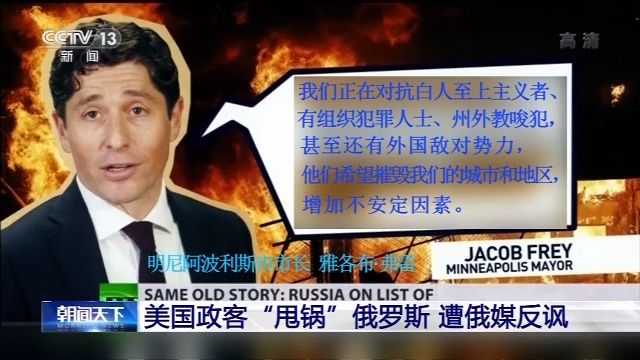 “今日俄羅斯”電視臺(tái)記者:說(shuō)白了,俄羅斯、白人至上主義者、販毒集團(tuán)我們這些外國(guó)勢(shì)力都一直在等待。等著讓一個(gè)明尼蘇達(dá)州的警察,殺害了一個(gè)手無(wú)寸鐵的非洲裔美國(guó)人,直到這在美國(guó)掀起軒然大波,這劇本還真是又臭又長(zhǎng)??!