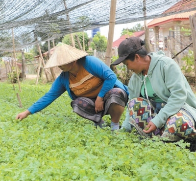 老撾金花村村民在中國—老撾合作農(nóng)作物優(yōu)良品種試驗站的幫助下種植大棚蔬菜。本報記者 孫廣勇攝