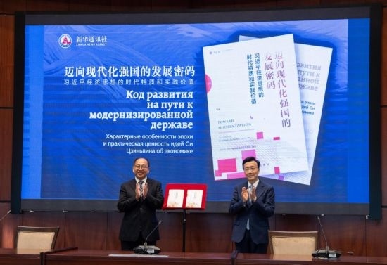 會議重點(diǎn)宣介和展示的新華社國家高端智庫報(bào)告《邁向現(xiàn)代化強(qiáng)國的發(fā)展密碼——習(xí)近平經(jīng)濟(jì)思想的時(shí)代特質(zhì)和實(shí)踐價(jià)值》引發(fā)與會各國嘉賓廣泛關(guān)注。該智庫報(bào)告是新華社研究習(xí)近平新時(shí)代中國特色社會主義思想的創(chuàng)新成果,從哲學(xué)維度、方略維度、戰(zhàn)術(shù)維度和全球視野,全面闡釋習(xí)近平經(jīng)濟(jì)思想的核心要義、精神實(shí)質(zhì)、豐富內(nèi)涵,以“美”“實(shí)”“效”“協(xié)”“共”五個(gè)關(guān)鍵字深入解讀習(xí)近平經(jīng)濟(jì)思想的鮮明特征,系統(tǒng)展現(xiàn)了其中所蘊(yùn)含的大國經(jīng)濟(jì)治理智慧。