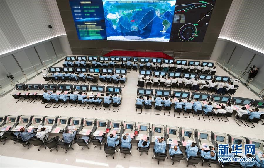 10月9日,在北京航天飛行控制中心,航天科技人員在現(xiàn)場(chǎng)工作。新華社記者才揚(yáng)攝