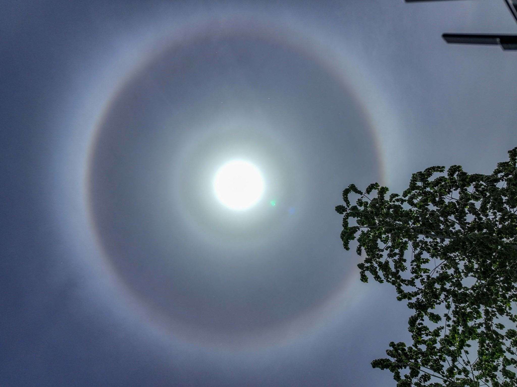 2023年4月29日,江蘇淮安,天空現(xiàn)日暈景觀。視覺(jué)中國(guó)
