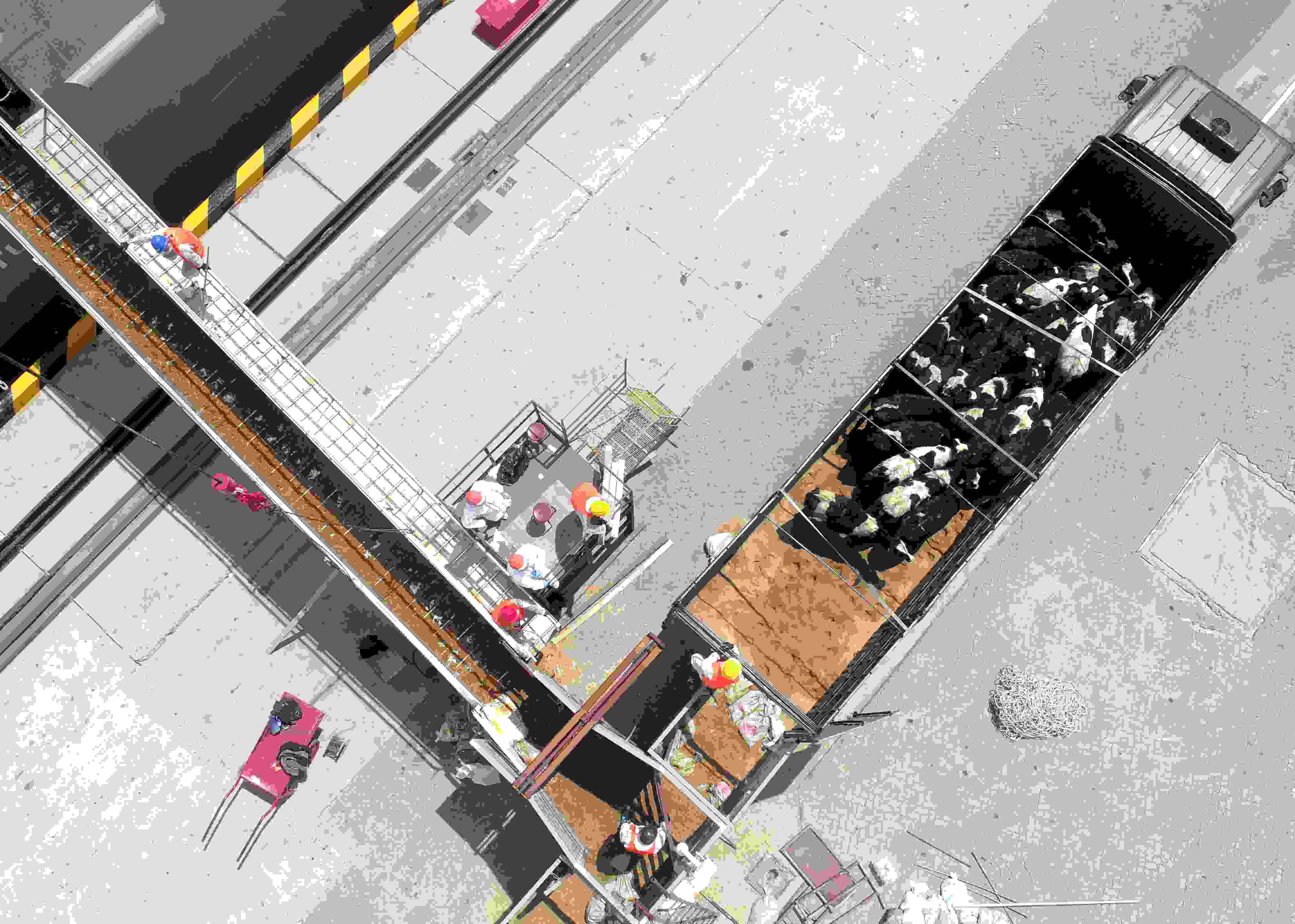 當日,在山東港口青島港前灣集裝箱碼頭, “加洛韋”輪在黃島邊檢部門的保障下,滿載的3000余頭活牛,經(jīng)過裝卸轉運,全部進入指定隔離場,進入隔離檢驗期。