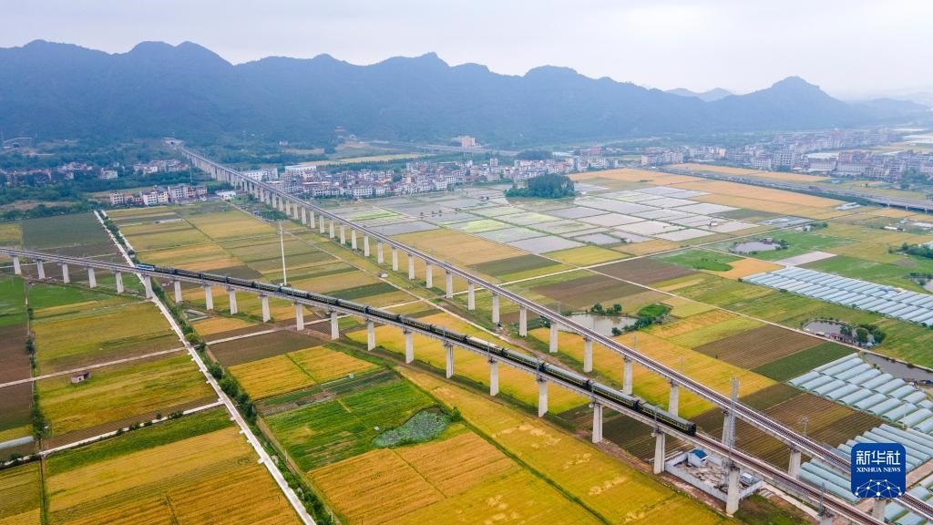 5月6日拍攝的湖南省資興市唐洞街道鏡塘村田園風光(無人機照片)。