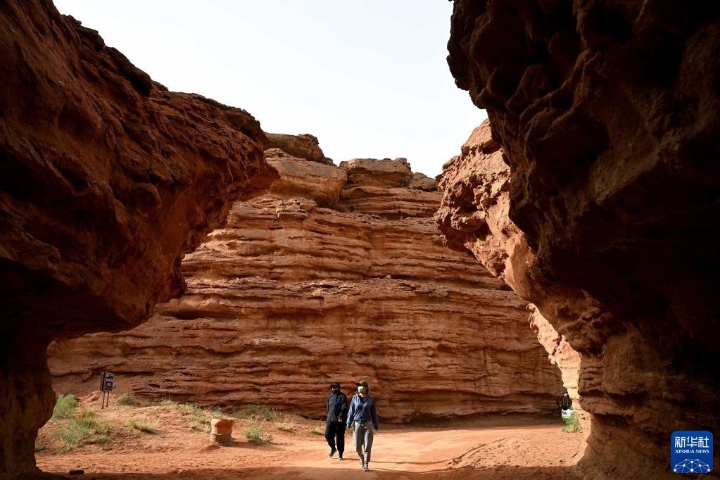 5月13日,游客在內(nèi)蒙古阿拉善盟阿拉善左旗西部夢幻峽谷景區(qū)參觀游玩。