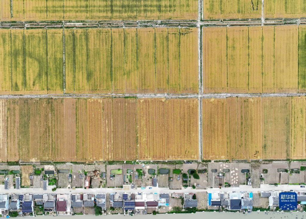 5月24日拍攝的江蘇省揚(yáng)州市邗江區(qū)公道鎮(zhèn)的麥田景色(無(wú)人機(jī)照片)。