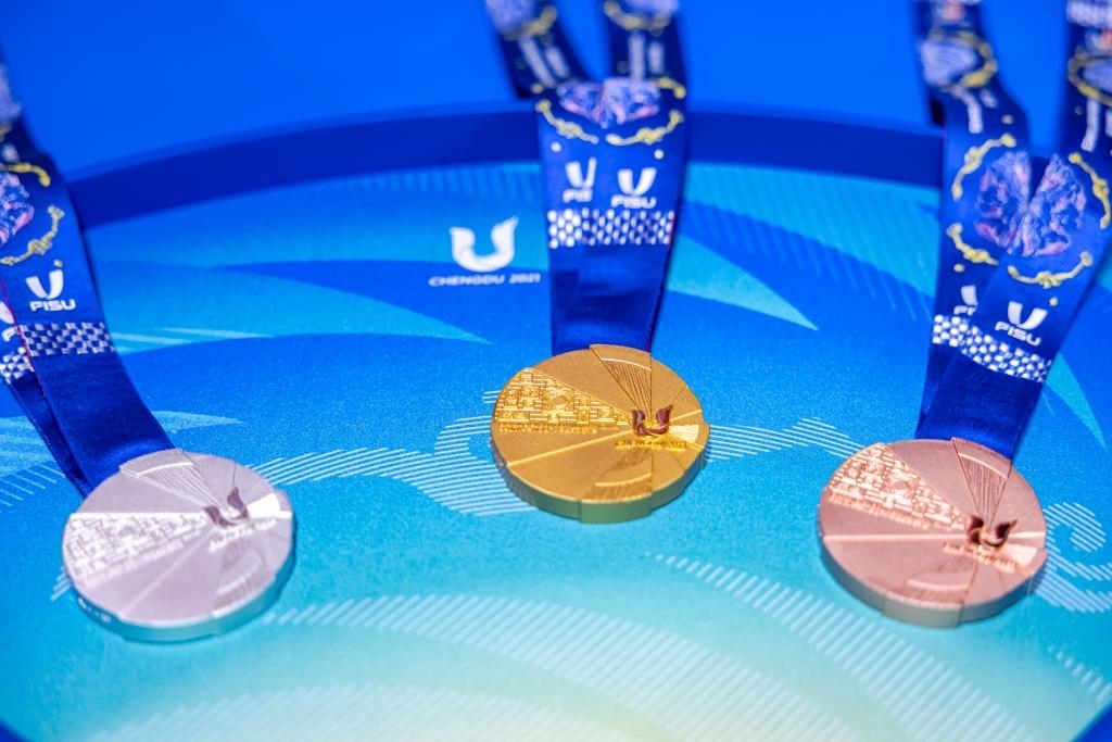 獎(jiǎng)牌是每個(gè)體育賽事的重要組成部分之一,本屆大運(yùn)會(huì)獎(jiǎng)牌根據(jù)國際大體聯(lián)要求,融合成都和國際化傳播元素,最終形成了大運(yùn)會(huì)獎(jiǎng)牌“蓉光”。獎(jiǎng)牌整體設(shè)計(jì)以成都大運(yùn)會(huì)會(huì)徽和太陽神鳥為主要靈感,利用幾何扇面代表太陽光芒,傳遞了太陽神鳥守護(hù)夢(mèng)想的設(shè)計(jì)概念。獎(jiǎng)牌以“蓉光”為名,諧音為“榮光”,寓意榮耀、光彩,寄托了對(duì)大運(yùn)健兒在成都青春展翅、乘夢(mèng)而行的美好期許。