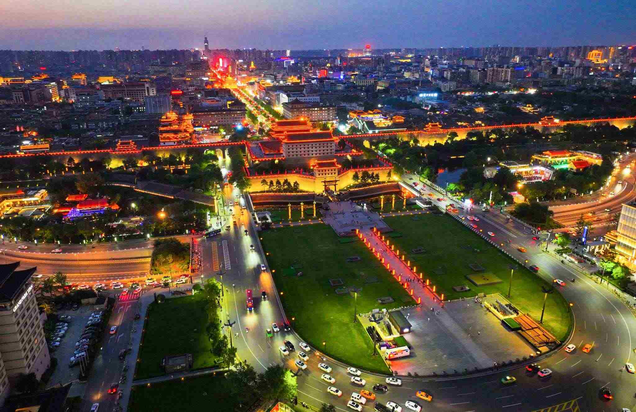 2023年6月8日,西安南門城墻及中軸線夜景。視覺中國