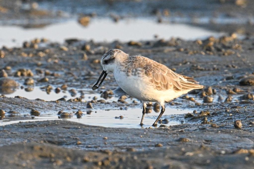 世界珍稀鳥(niǎo)類勺嘴鷸在海南儋州灣濕地覓食。新華社記者 蒲曉旭 攝