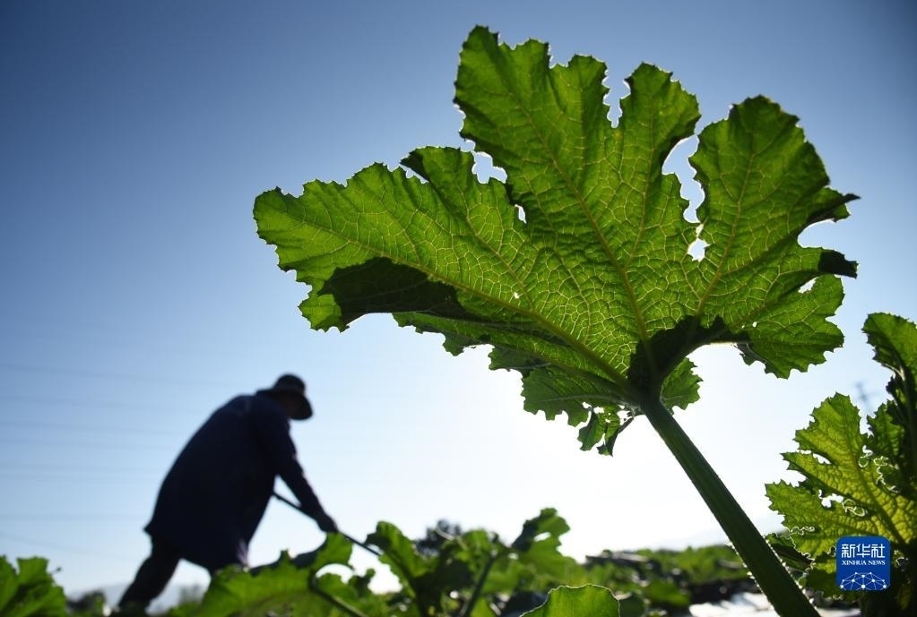 6月5日,在云南省麗江市玉龍納西族自治縣黃山街道長水社區(qū),菜農(nóng)在田里勞作。