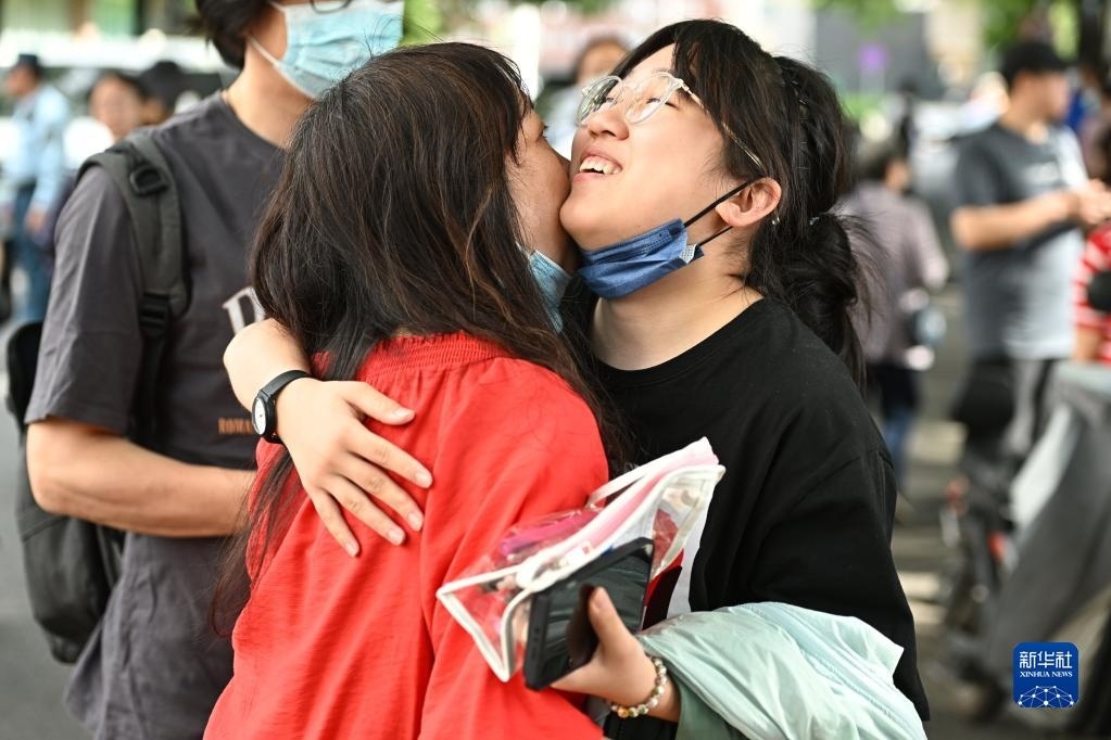 6月7日,在吉林省長春市五十六中學(xué)考點,考生入場前與家長擁抱。
