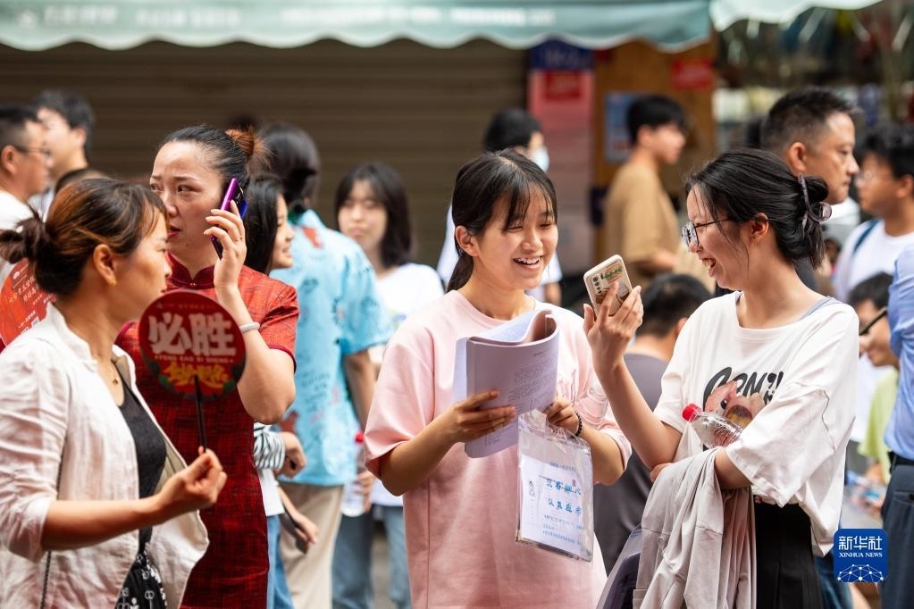 6月7日,在北京師范大學(xué)附屬實驗中學(xué)考點門口,考生們合影留念。