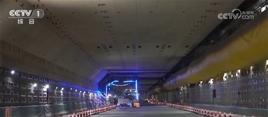 總臺(tái)央視記者 李偉代:我身后就是深中通道西人工島,它是深中通道橋隧轉(zhuǎn)換的關(guān)鍵構(gòu)造;從這里開始,深中通道將從橋梁部分轉(zhuǎn)入全長(zhǎng)6845米海底隧道部分,未來(lái)汽車將從這里駛?cè)牒5姿淼?,最深將在海?0米的沉管中行駛。