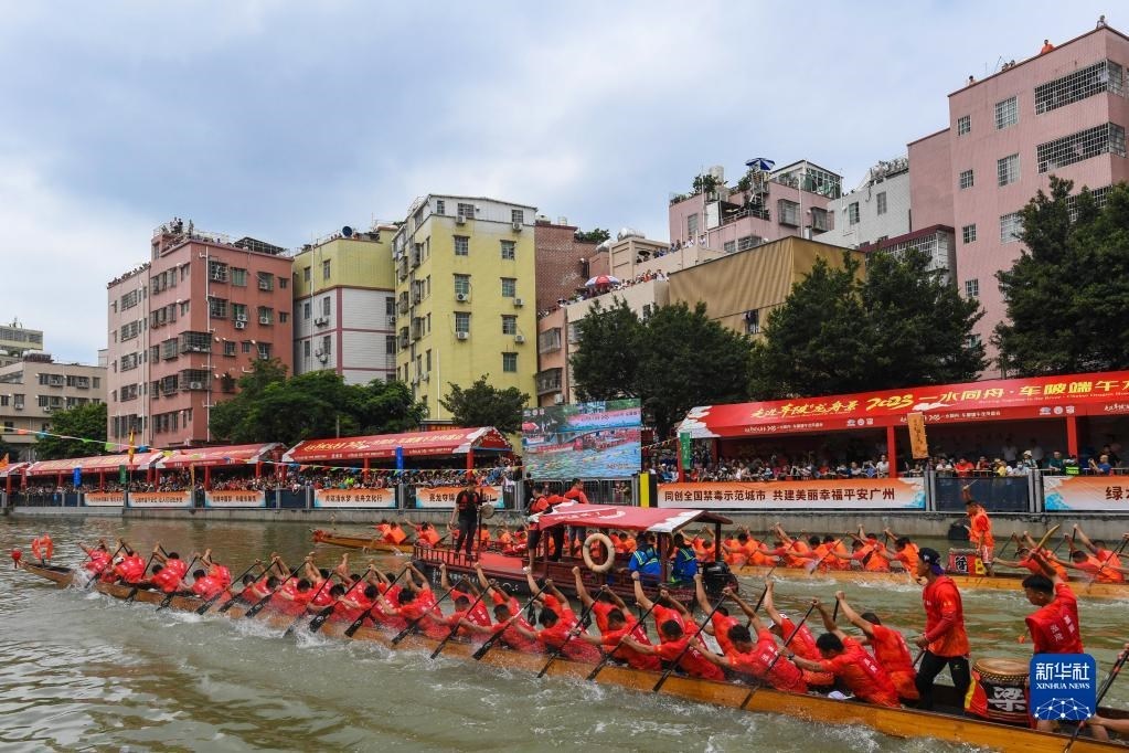 賽龍奪錦代表一種人生態(tài)度,更有著豐富的精神內(nèi)涵。對于車陂這樣的“城中村”而言,族人在端午回村里劃龍舟、吃龍船飯。龍舟如今既是留住文化記憶的重要載體,更是新都市如何留住老鄉(xiāng)愁的一份珍貴答卷。新華社記者 劉大偉 攝