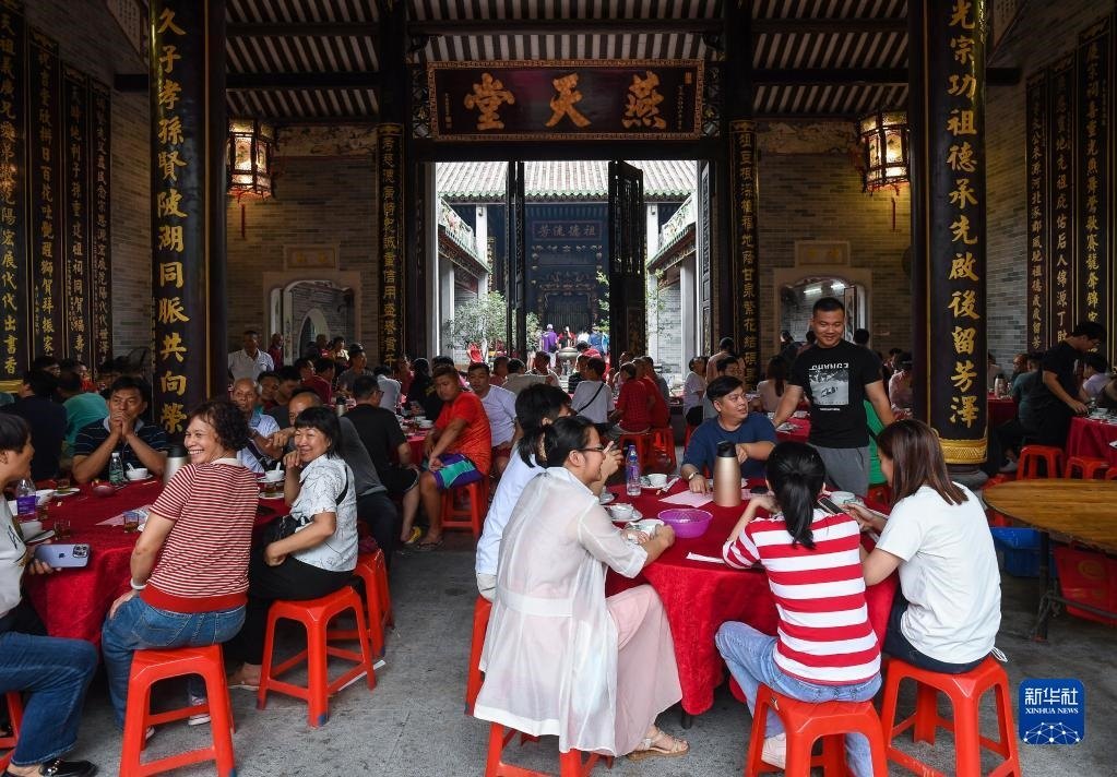 6月15日,2023年車陂龍舟競渡第一名“范陽簡”龍船會(huì)在簡氏家祠里擺下幾十桌龍船飯慶祝。