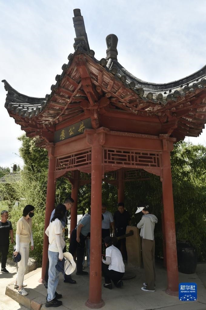 6月15日,游人在王屋山腳下的愚公村村史館里參觀。