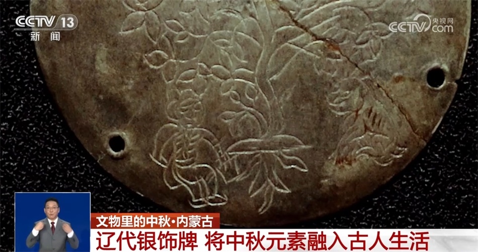 內(nèi)蒙古文物考古研究院珍藏的這塊遼代月宮桂樹(shù)仙女銀飾牌,是服裝上的一種飾品,同樣鏨刻了桂樹(shù)、嫦娥和玉兔。