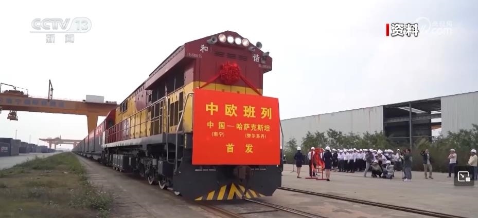 7月20日,滿載日用品、電子產(chǎn)品、建材產(chǎn)品等55個集裝箱貨物的列車從廣西南寧國際鐵路港出發(fā),經(jīng)新疆阿拉山口鐵路口岸出境,發(fā)往哈薩克斯坦阿拉木圖。