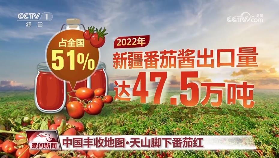 如今,加工番茄已成為新疆百姓創(chuàng)收致富的主導(dǎo)產(chǎn)業(yè)。 全球每4瓶番茄醬中,就有1瓶的原料來自新疆。烏魯木齊海關(guān)數(shù)據(jù)顯示,2022年新疆番茄醬出口量達47.5萬噸,占全國的51%。