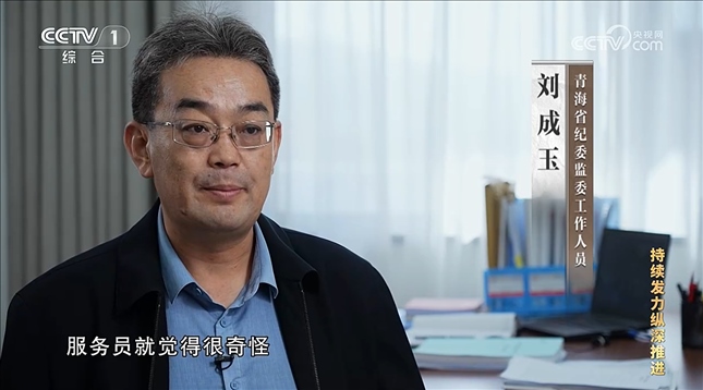 竇閩(中央紀(jì)委國(guó)家監(jiān)委機(jī)關(guān)工作人員):中央紀(jì)委國(guó)家監(jiān)委始終把落實(shí)中央八項(xiàng)規(guī)定精神作為監(jiān)督執(zhí)紀(jì)的底線性任務(wù),決不允許以高原地區(qū)喝酒驅(qū)寒為違規(guī)吃喝找借口,決不允許以鄉(xiāng)黨文化根深蒂固為喝酒聚餐找理由。查辦案件過(guò)程中,我們堅(jiān)持與以案促改促治同謀劃、同部署、同推進(jìn),指導(dǎo)青海省委、省紀(jì)委監(jiān)委在全省開(kāi)展專(zhuān)項(xiàng)教育整治,推動(dòng)中央八項(xiàng)規(guī)定精神在高原大地落地生根。