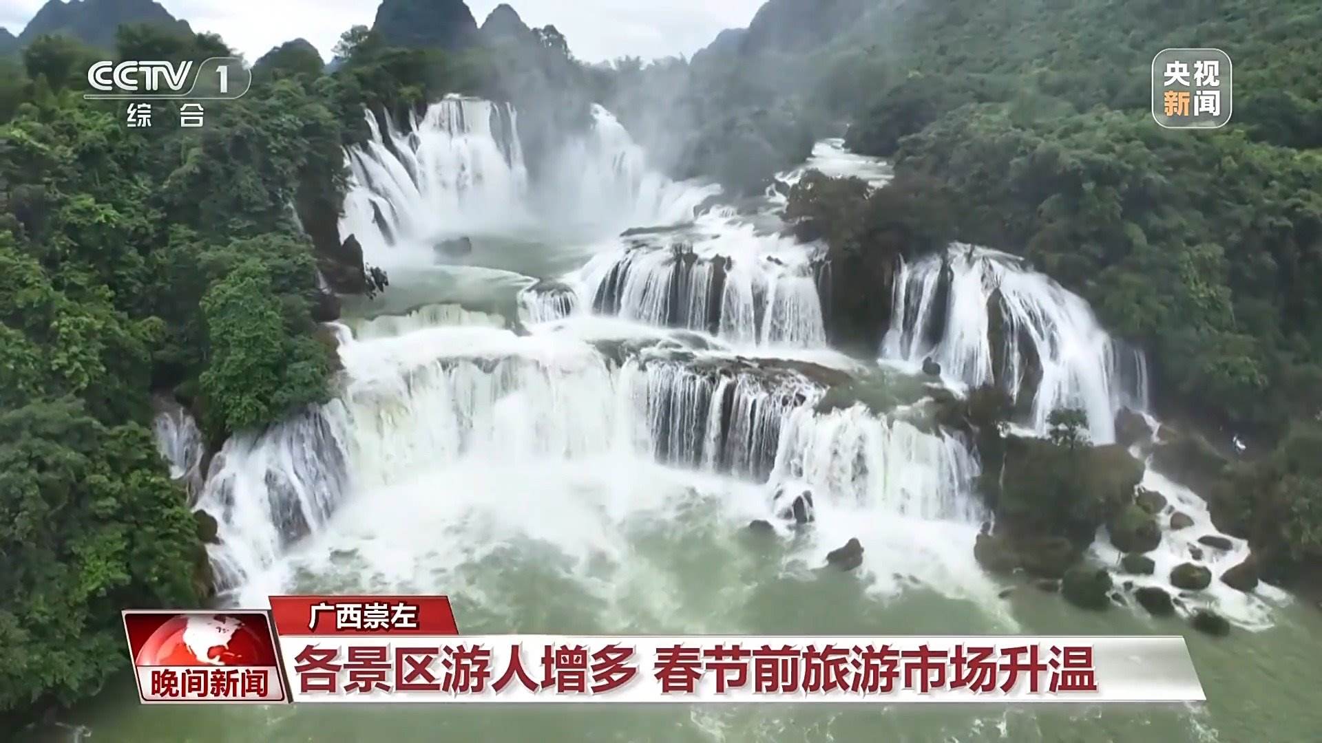 冰天雪地的北國風光讓人著迷,而四季如春的南派風景,同樣令人沉醉。在廣西崇左的大新縣,多個景區(qū)里,前來游玩的游客絡(luò)繹不絕。有的眺望氣勢磅礴的瀑布,有的聆聽特色的壯族民歌,還有的探訪豐富多彩的壯鄉(xiāng)文化,感受祖國大美山河的魅力。