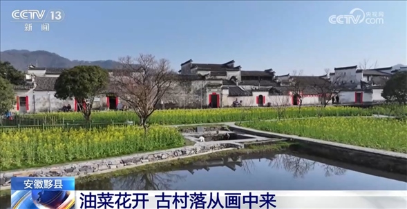 陽(yáng)春三月,安徽黟縣西遞古村落的油菜花競(jìng)相開放,金黃的油菜花與粉墻黛瓦的古建筑、秀美的青山綠水相互映襯,好似一幅精美的畫卷。如詩(shī)如畫的美景吸引著游客們紛紛駐足觀賞,他們沉浸在美麗的花海之中,細(xì)嗅著油菜花的芬芳,感受著春天的氣息。