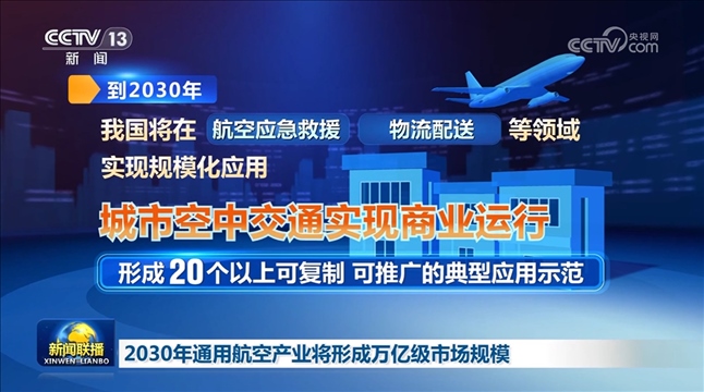 工業(yè)和信息化部表示,到2030年,我國(guó)將在航空應(yīng)急救援、物流配送等領(lǐng)域?qū)崿F(xiàn)規(guī)模化應(yīng)用,城市空中交通實(shí)現(xiàn)商業(yè)運(yùn)行,形成20個(gè)以上可復(fù)制、可推廣的典型應(yīng)用示范。打造10家以上具有生態(tài)主導(dǎo)力的通用航空產(chǎn)業(yè)鏈龍頭企業(yè)。形成萬(wàn)億級(jí)規(guī)模的通用航空產(chǎn)業(yè)市場(chǎng)。以高端化、智能化、綠色化為特征的通用航空產(chǎn)業(yè)發(fā)展新模式在我國(guó)將基本建立。
