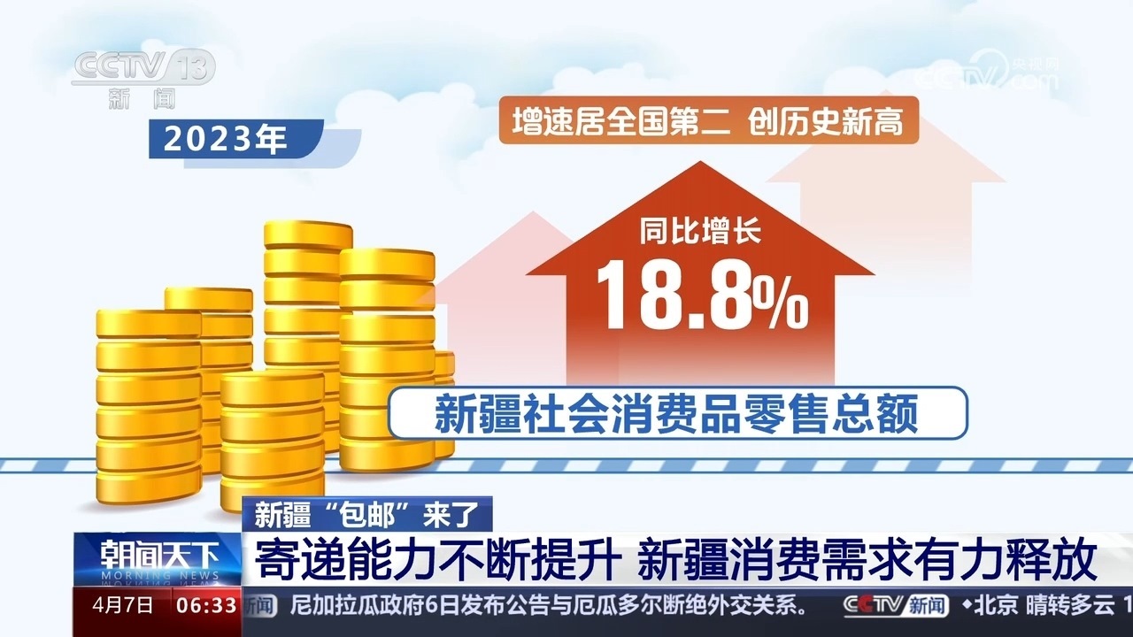 央視網(wǎng)消息:今年,隨著不少快遞企業(yè)聯(lián)合電商平臺在新疆地區(qū)逐步試點推行包郵計劃,超千萬件商品實現(xiàn)包郵。