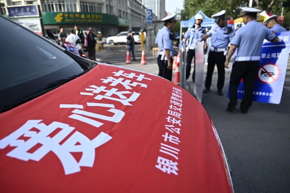 ↑6月7日,寧夏銀川市公安局交通警察分局興慶區(qū)交警一大隊(duì)民警在準(zhǔn)備愛心送考車輛。