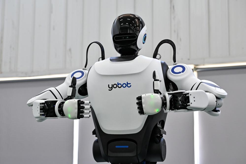 7月3日,在位于安徽省蕪湖市的科技公司內(nèi),一款人形機(jī)器人在做手勢。新華社記者 張鋮 攝