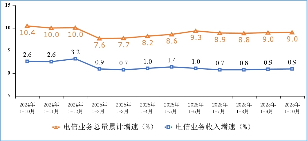 據(jù)工業(yè)和信息化部網(wǎng)站消息,工信部發(fā)布2025年前10個月通信業(yè)經(jīng)濟運行情況。