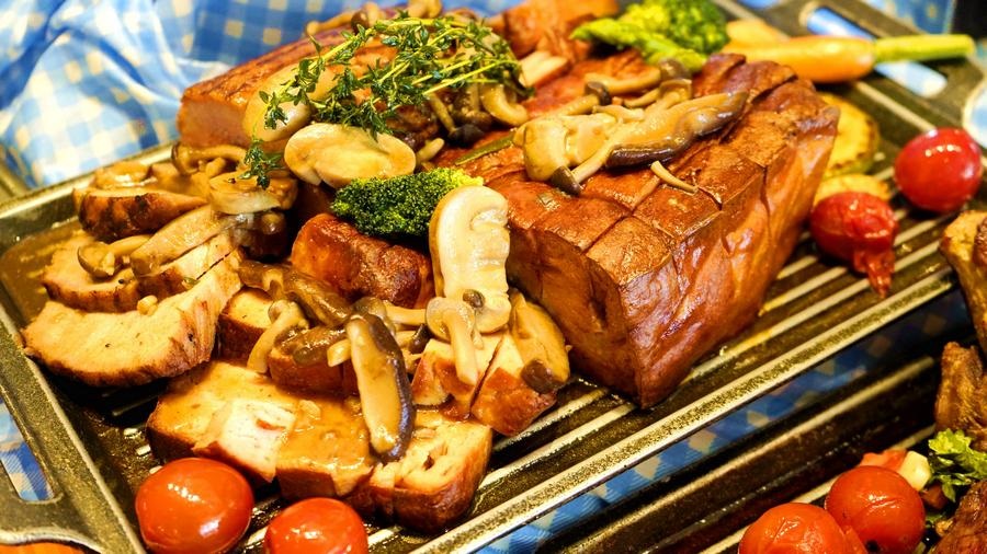 各類香腸瞬間把食客帶入德國的美食世界,德國盛產(chǎn)香腸,其肉質(zhì)緊實(shí),肉汁豐盈。獨(dú)特的風(fēng)味讓食客流連忘返。現(xiàn)場歡快的音樂烘托著氣氛,法蘭克福香腸、蝸牛豬肉腸、圖林根香腸、慕尼黑白腸、小牛肉腸,各式香腸在食臺(tái)上翻滾。清爽的沙拉與制作工藝復(fù)雜的冷切肉,搭配各種小料一起食用,滿滿德國風(fēng)味?! ?/p>