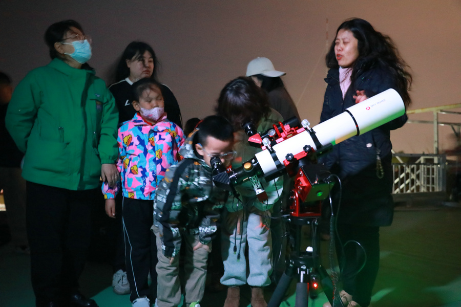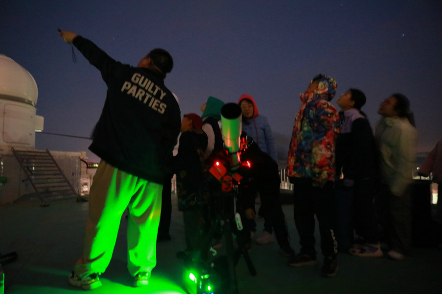 夜幕降臨,參加活動的學員家庭走進悟空天文臺,近距離接觸“內(nèi)蒙古天眼”——自治區(qū)最大的單口徑光學望遠鏡,學習望遠鏡構(gòu)造與應(yīng)用原理。在老師的指導下,通過望遠鏡觀測春季星空,辨識星座,領(lǐng)略土星光環(huán)、月球隕石坑等天象奇觀。活動還特別設(shè)置了“天文趣味知識大挑戰(zhàn)”,以互動問答鞏固學習成果,孩子們爭相搶答,展現(xiàn)出對宇宙的無限好奇。