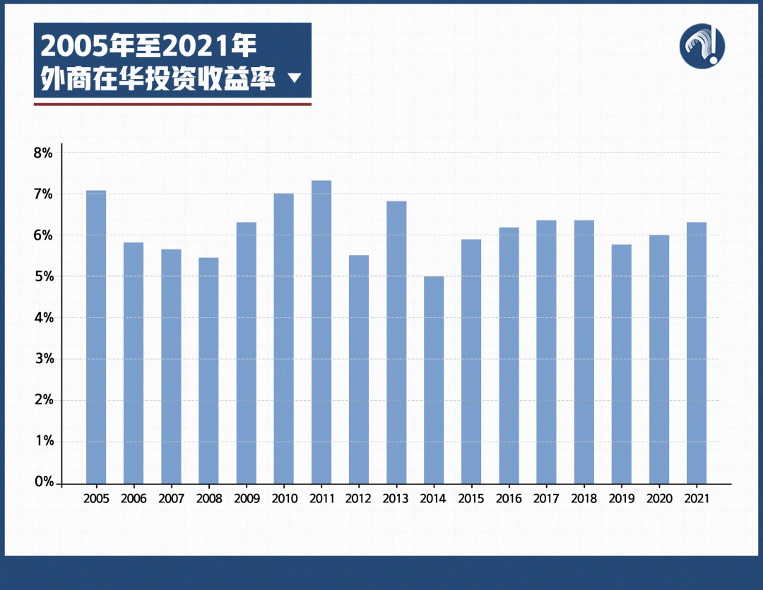 即便在新冠肺炎疫情期間,外商在華投資總體收益率依然在上升。2021年,外國投資者在中國投資,仍然能獲得超6%的收益率。