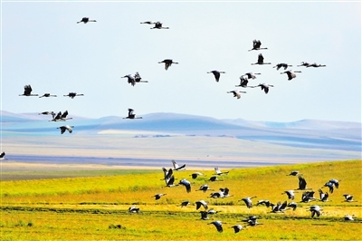 在這優(yōu)美畫卷中,蓑羽鶴就是額侖草原上的精靈,給草原平添了生命的活力。蓑羽鶴是鶴類中個體最小者,對生態(tài)環(huán)境質(zhì)量要求很高。從之前的形單影只,到現(xiàn)在的成群結(jié)隊,蓑羽鶴對額侖草原的青睞,足以說明了額侖草原生態(tài)環(huán)境的保護成效。
