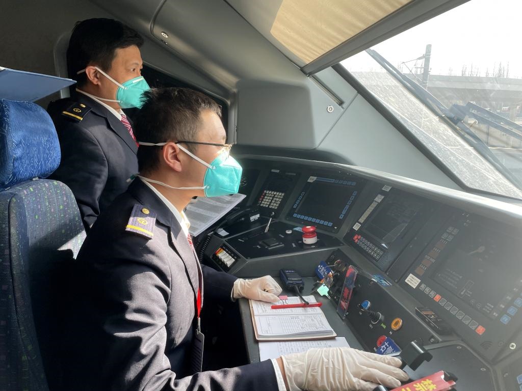 檢測(cè)人員駕駛試驗(yàn)列車(chē)進(jìn)行檢測(cè)工作。新華社發(fā) 孫杞民 攝