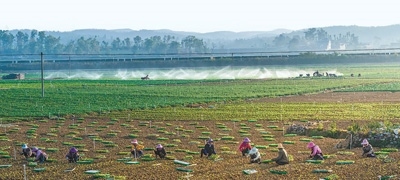云南省硯山縣平遠鎮(zhèn)農(nóng)民在移栽冬季輪作蔬菜。 王國禮攝