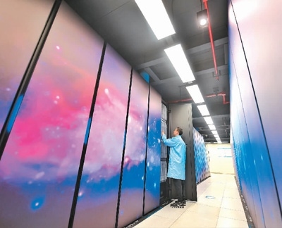 2023年2月14日,四川省成都市,國家超級計算成都中心的科研人員在巡檢機(jī)房設(shè)備。新華社記者 劉 坤攝