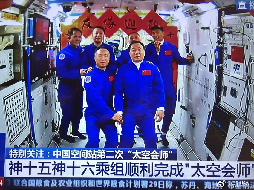 神舟十六號(hào)航天員順利進(jìn)駐中國(guó)空間站。兩個(gè)航天員乘組拍下“全家?!?,共同向牽掛他們的全國(guó)人民報(bào)平安。后續(xù),兩個(gè)航天員乘組將在空間站進(jìn)行在軌輪換。(王逸濤、張瑞杰、韓啟揚(yáng))