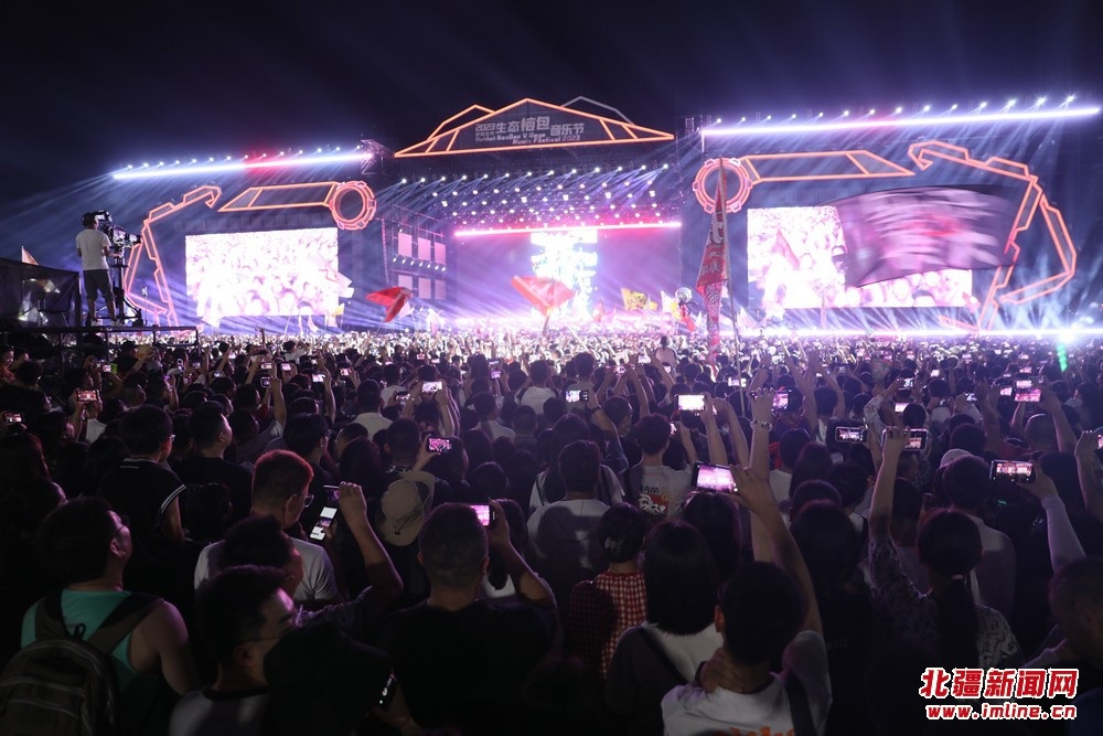 從當(dāng)天下午開始,戰(zhàn)旗樂隊、發(fā)條卡目索、藍(lán)野樂隊、蘇菲花園、陳碩子、丟火車、麻園詩人、趙雷、二手玫瑰等輪番登場。一首首歌曲,一幕幕高潮,粉絲們揮舞著旗子和熒光棒,跟著現(xiàn)場的動感節(jié)奏,一起歡呼一起歌唱,惱包馨村一片歡騰。