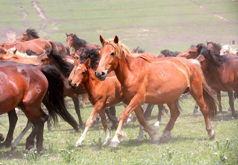 活動(dòng)現(xiàn)場尤為引人注目的還有“萬馬奔騰”表演,只見騎手們頭纏彩巾,揚(yáng)鞭策馬,他們身旁,近萬匹馬兒在騎手的驅(qū)趕下奔馳而來,馬蹄聲下草原上揚(yáng)起陣陣沙塵,十分壯觀。