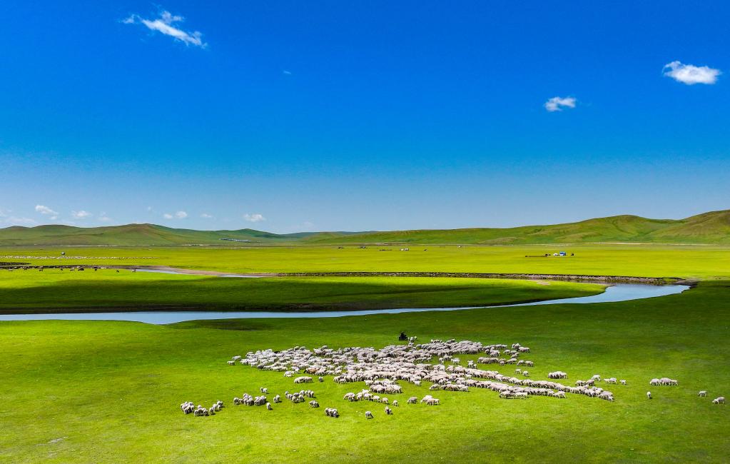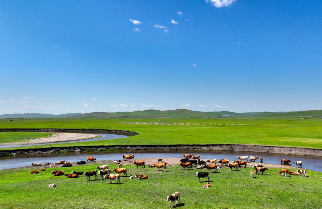 以上圖片:2025年7月13日在內(nèi)蒙古自治區(qū)呼倫貝爾市陳巴爾虎旗境內(nèi)拍攝的莫爾格勒河風(fēng)光。(無(wú)人機(jī)照片)CICPHOTO/王正